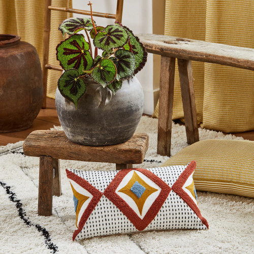 Obliečka na vankúš Zayi zaujme svojimi farbami i etnickými grafickými vzormi, ktoré oživia každý interiér. Zároveň do neho vnesie kúsok tepla a autentickosti. Sú na nej použité rôzne techniky bohaté na farebnosť. Čiarkovaný vyšívaný motív zvýrazňuje dominantu v podobe diamantov.